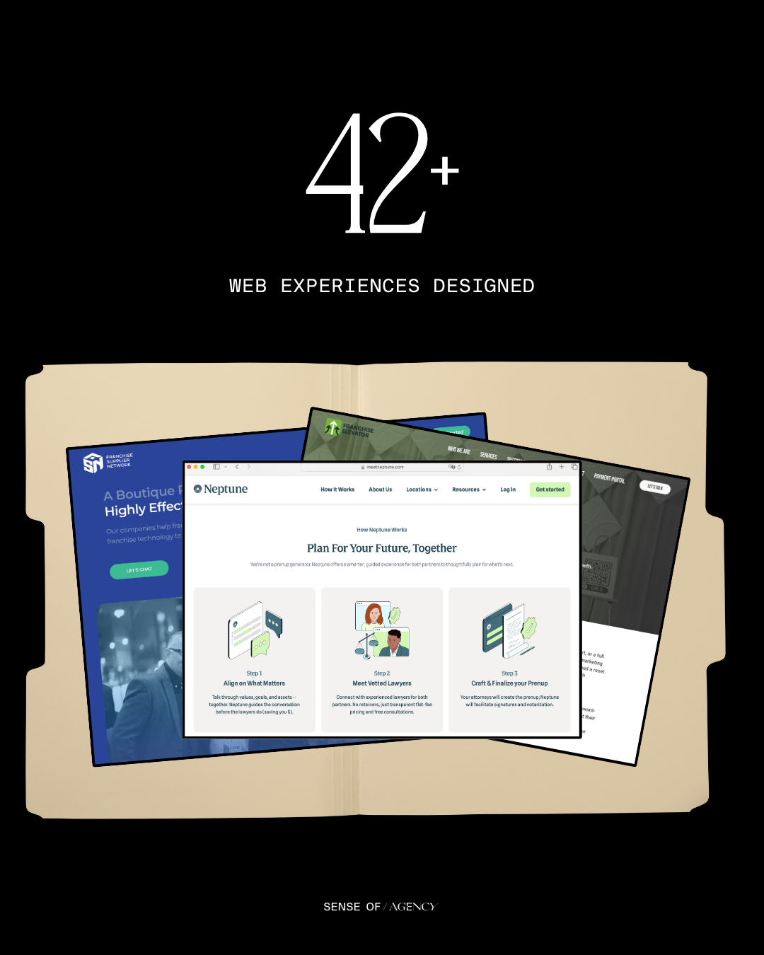 Digital presence remained a cornerstone of our creative impact. Over the year, we designed more than forty-two web experiences for companies including Neptune, Franchise Supplier Network, and Franchise Elevator. Each experience was built with intention, aligning brand identity, user experience, and business goals into cohesive digital environments designed to grow alongside the companies they represent.